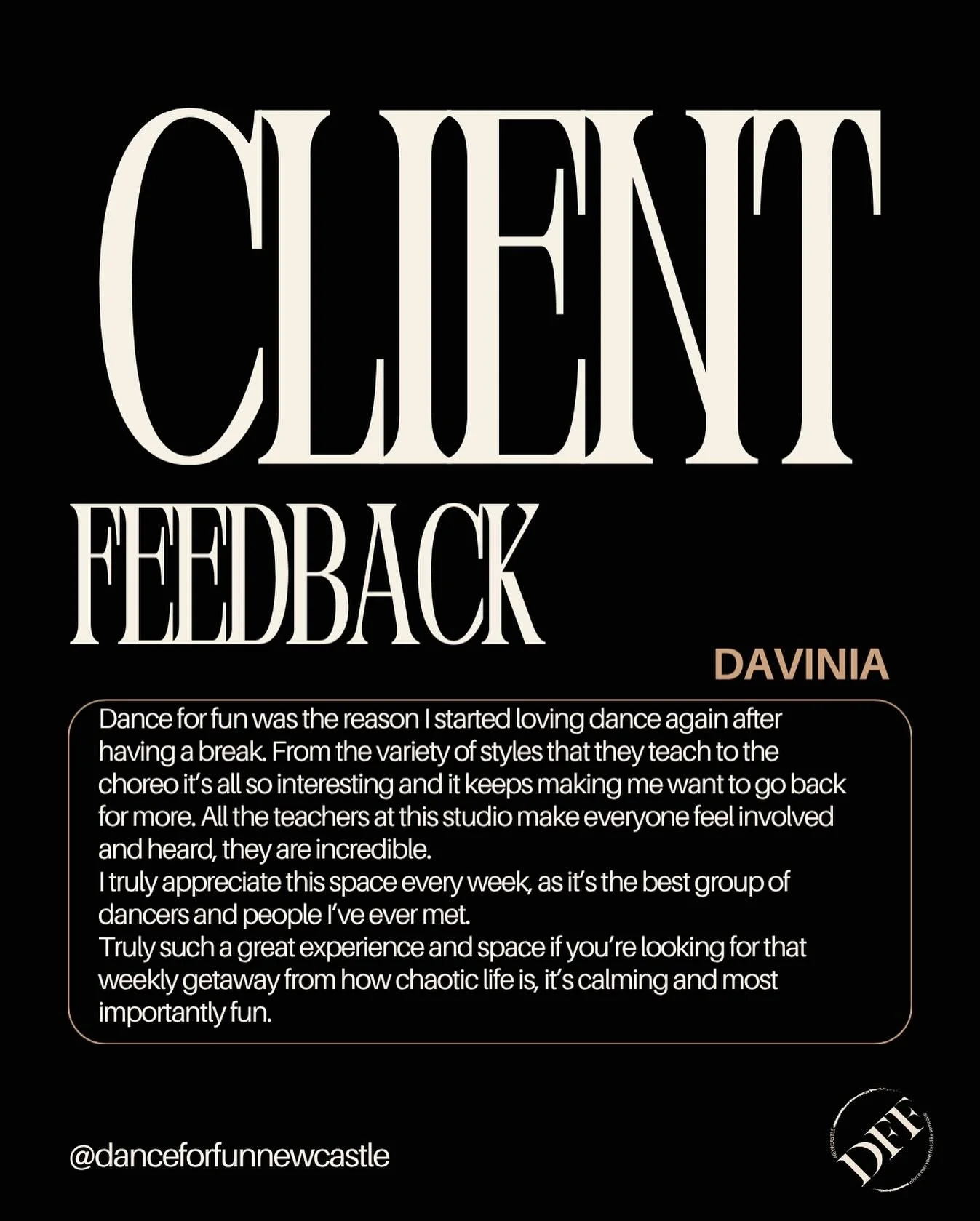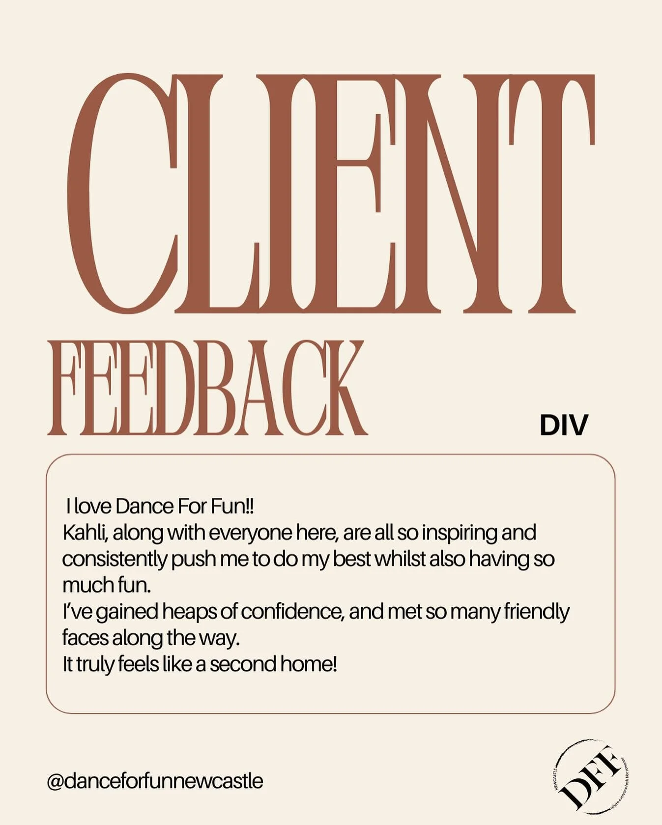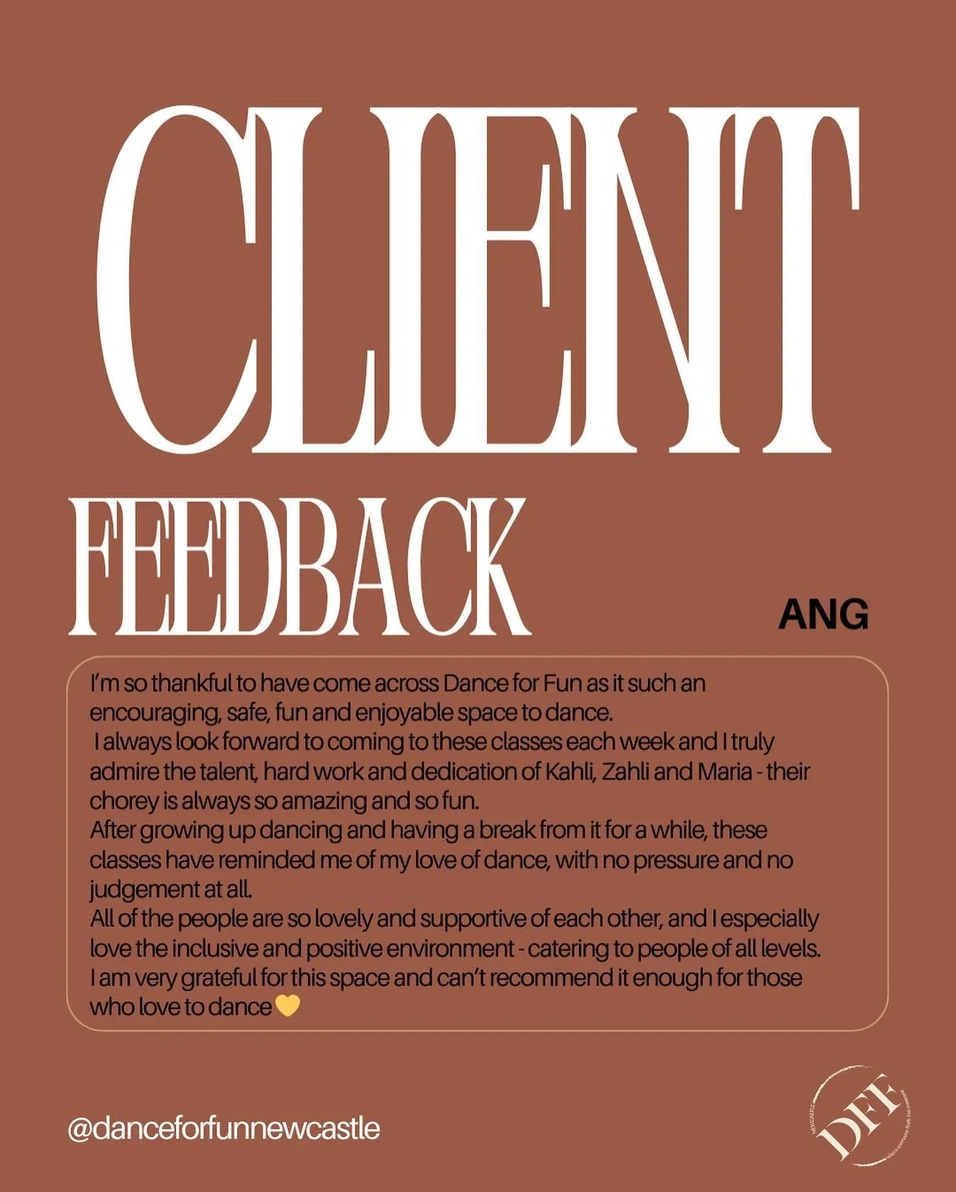 ‘Dance For Fun is for everyone! I can’t thank Kahli enough for getting me out of my comfort zone & allowing me to feel confident in my own skin‘